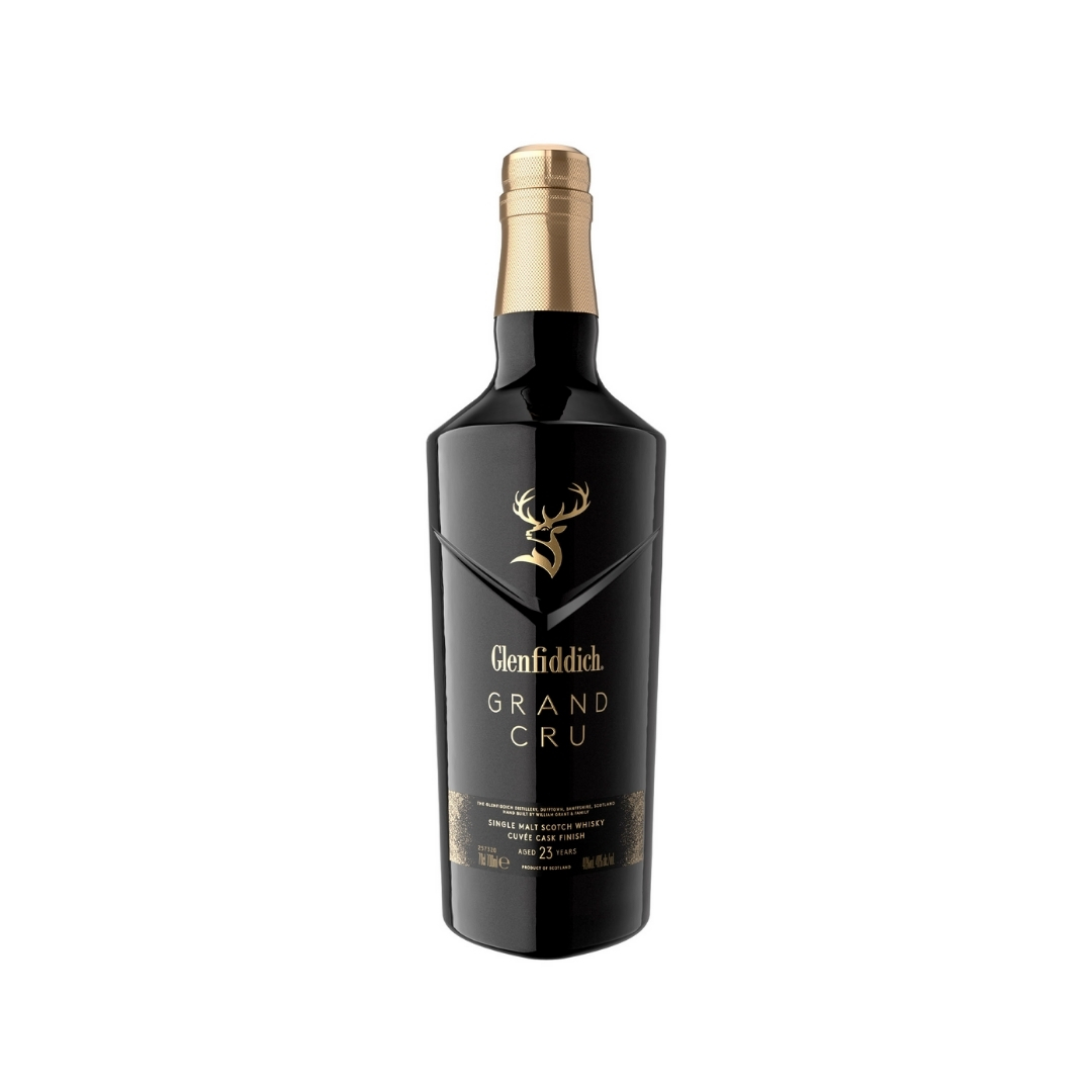 Glenfiddich 23 Years Old Grand Cru rappresenta l’incontro tra l’eccellenza del Single Malt scozzese e l’eleganza dello Champagne francese. Dopo un lungo invecchiamento di 23 anni in botti di rovere, questo whisky viene affinato in rare botti di Cuvée provenienti da prestigiose Maison di Champagne.